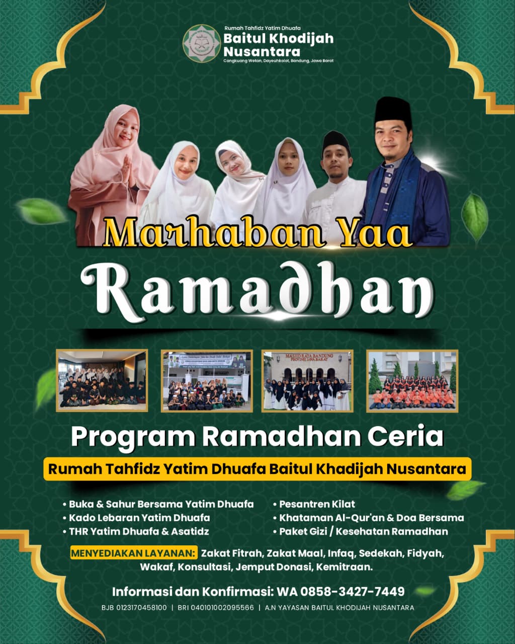 Lebih LanjutMari hadirkan kebahagiaan Ramadhan untuk anak-anak yatim dan dhuafa melalui program Ramadhan Ceria Rumah Tahfidz Baitul Khodijah Nusantara. Bersama kita wujudkan buka puasa, sahur, pendidikan Al-Qur'an, serta kebahagiaan lebaran bagi mereka yang membutuhkan.